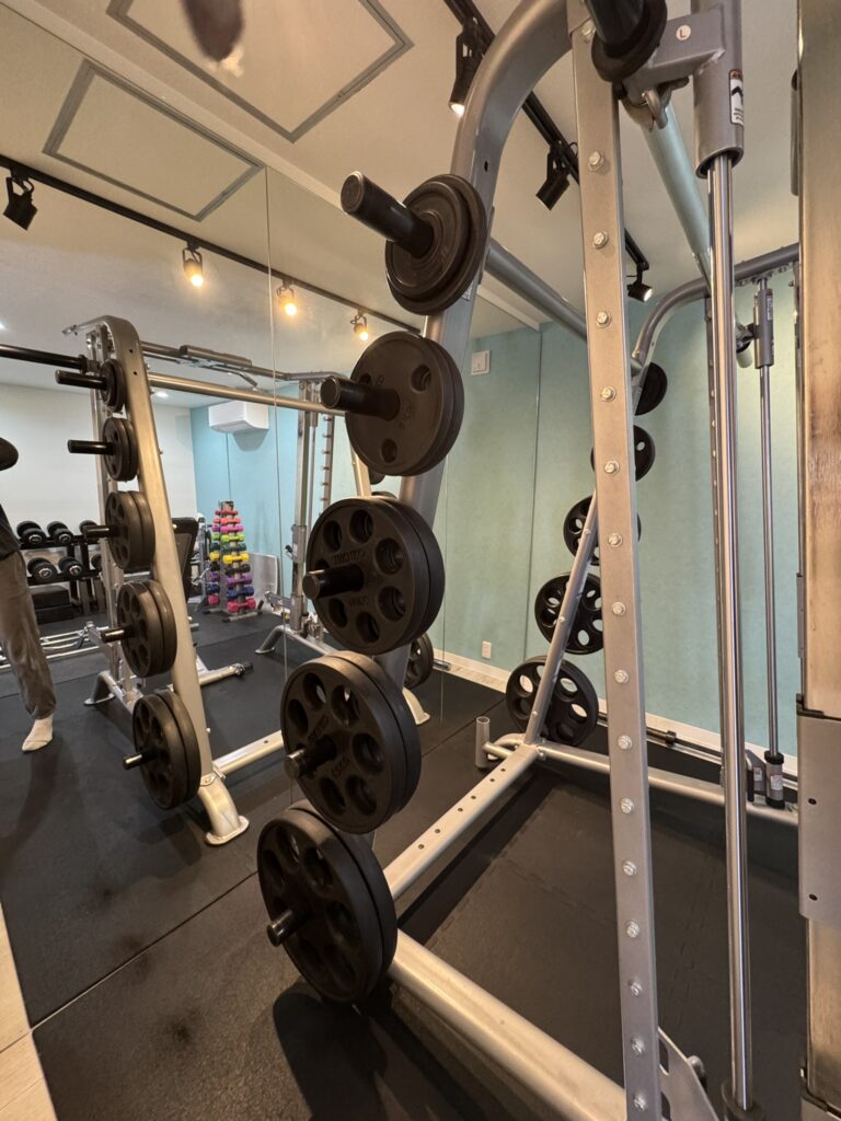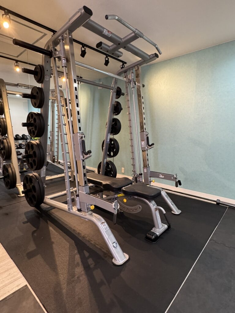 スミスマシンのチンニンググリップに引っ掛けて